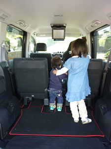 車を買ってから初めての旅行は、4月に家族と奥さんの両親とで行った彦根旅行でした。3列目に両親を乗せて伊勢を出発!途中亀山で休憩をとったときに母に「どう?」って聞いてみたんです。だって3列目って普段乗らないから乗り心地ってわからないじゃないですか。母は「快適やよぉ♪広いし、窓も大きいから見晴らしもいいし♪いい車やなぁ。」と上機嫌でした。帰りには2人ともスヤスヤと寝てたくらいですから乗り心地も良かったんでしょう♪