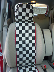 マッドガードは、ボディ同色で気に入ってます。シートクロスチェッカー柄を取り付けました。