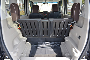 後席を倒す操作はワンタッチで簡単です。後ろの棚は高さを変えてセットできるので、載せる荷物によって選べるのはいいです。また、軽自動車なので車体が小さいのも気に入っています。駐車場での取り回しが楽です。