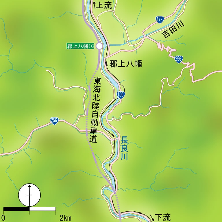 東海北陸自動車道・美並ICもしくは郡上八幡ICを降りR156沿いの各ポイントへ。支流の吉田川も釣れる。