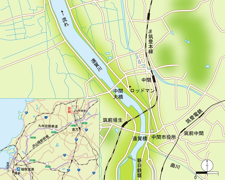 バスフィールドが遠賀川だ。遠賀川は福岡県筑豊地方の平野部を流れ、県北部の響灘に注ぐ一級河川である。