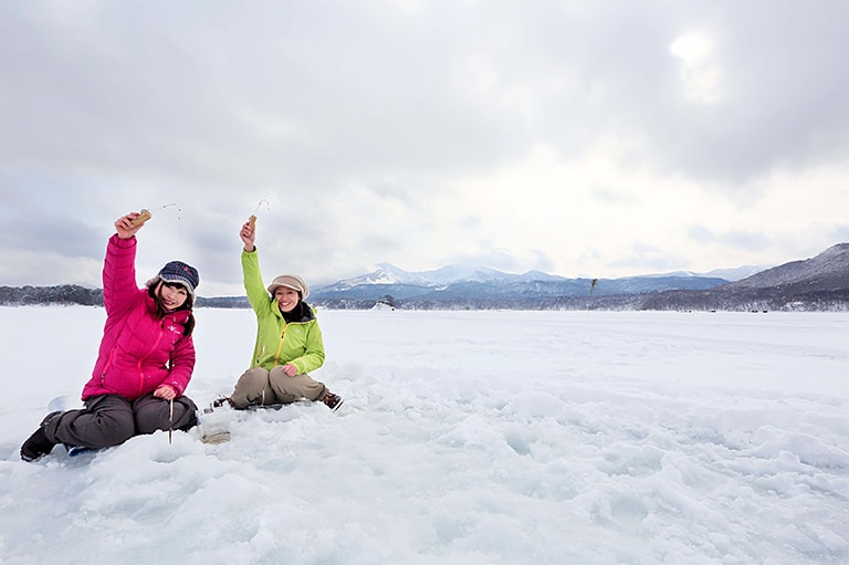 桧原湖の氷上ワカサギ釣り&雪中キャンプ