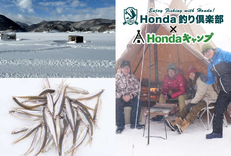 真冬に大人気の氷上ワカサギ釣り。その魅力を「Hondaキャンプ」とのコラボで、雪中キャンプも楽しみながらお届けします!