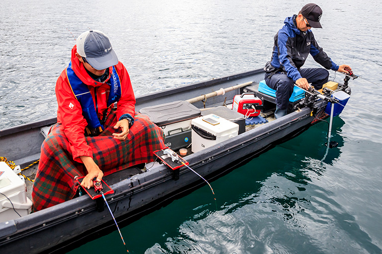 大小の岬、入江、そして島が連なる豊かな海で、イカダ釣り&ボートエギングを楽しむ。