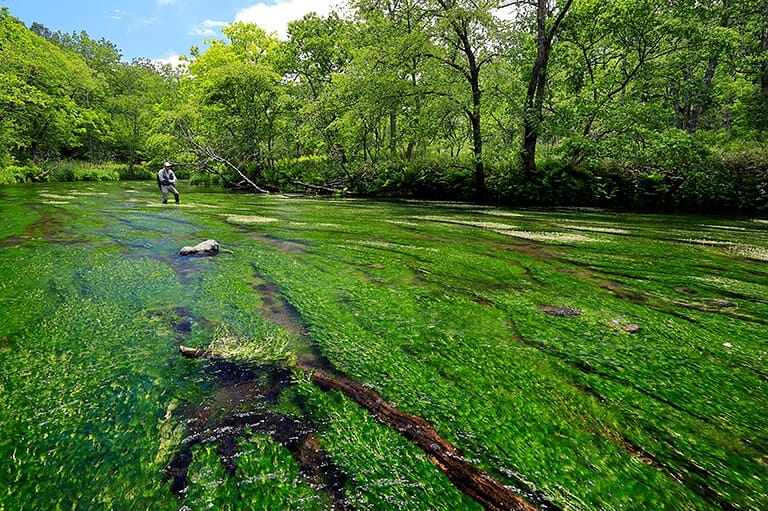 ラムサール条約の登録湿地である戦場ヶ原を流れる湯川。広大な湿原と森を縫う流れでの釣りは、ここが日本であることを忘れさせてくれる。