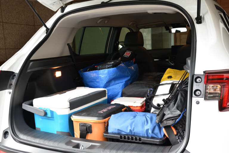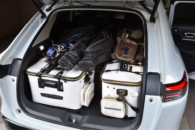 出発日の朝、2つのチームは都内にある編集部1階の駐車場に集合。それぞれが準備した釣り道具をクルマに積み込んだ。