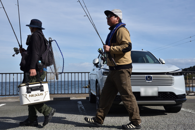 伊豆半島をVEZELで走り回っていたベテランンチームは、朝マヅメの高活性に期待して前夜に好調だったまどが浜海遊公園をチェック。しかし、魚の反応は静かだった