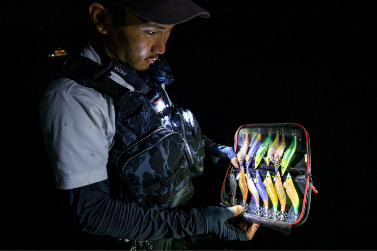 アオリイカは夜行性なので釣れる確率はナイトゲームのほうがやはり高い。警戒心の強い大型もエギを抱きやすくなる