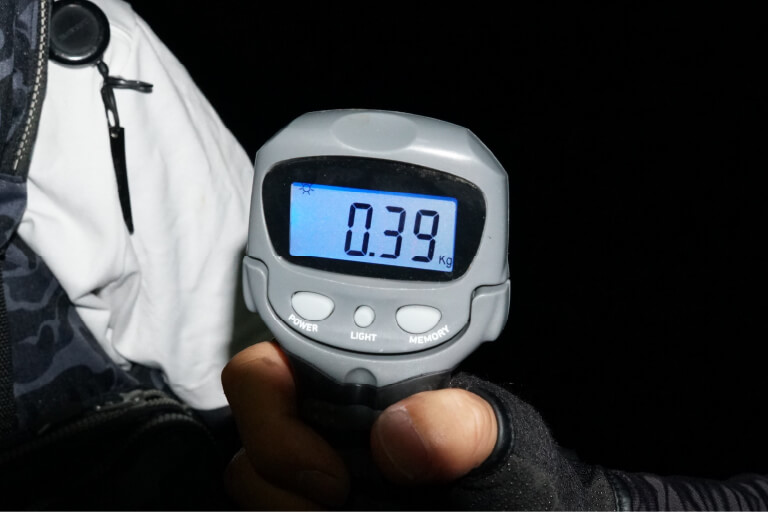 重さは280g。勝負といいつつ、今回はお楽しみ半分なので、計測はアオリイカが抱いているエギをデジタル測りでつまんで手早く簡易的に行った