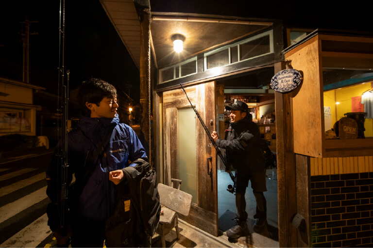 島に到着した二人は、夜の港とその延長の朝マヅメの釣りにそのまま出発!「カーフェリーで寝られたので休養は充分です!」と声をそろえ、意気揚々と釣り場に繰り出した