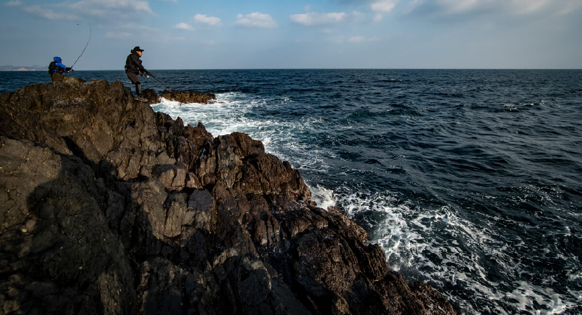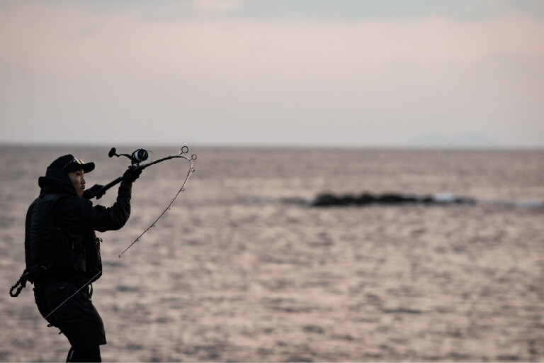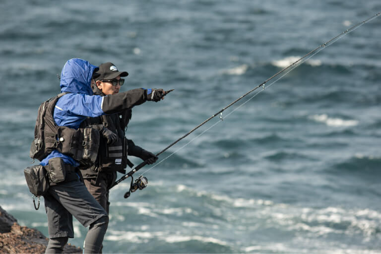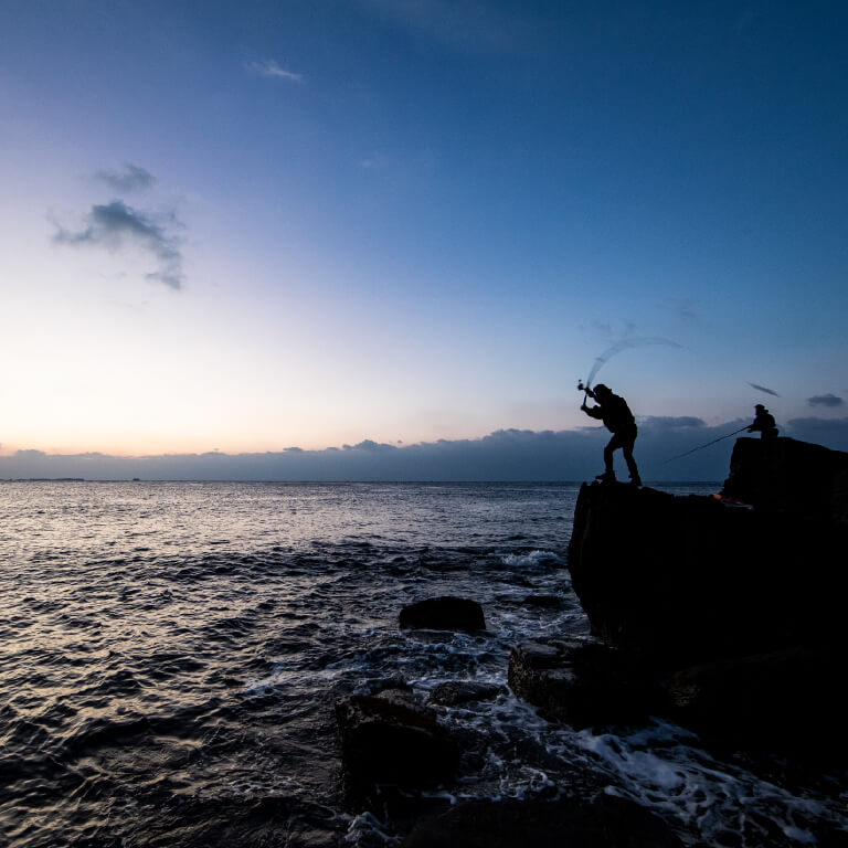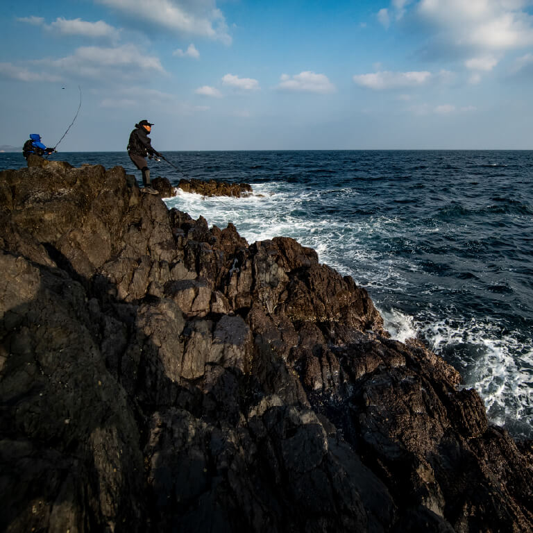 本格的なロックショアフィッシング(磯からのソルトルアーフィッシング)を楽しめる壱岐。芝さんのおすすめは、青ものの回遊がある時に使う「青もの用」と、サラシが出ている時にチャンスがある「ヒラスズキ用」の2つのタックルを用意しておくことだ。また、どちらの場合も安全に釣りをするために、磯用ゲームベスト、磯用シューズ、ウエットタイツは着用する。