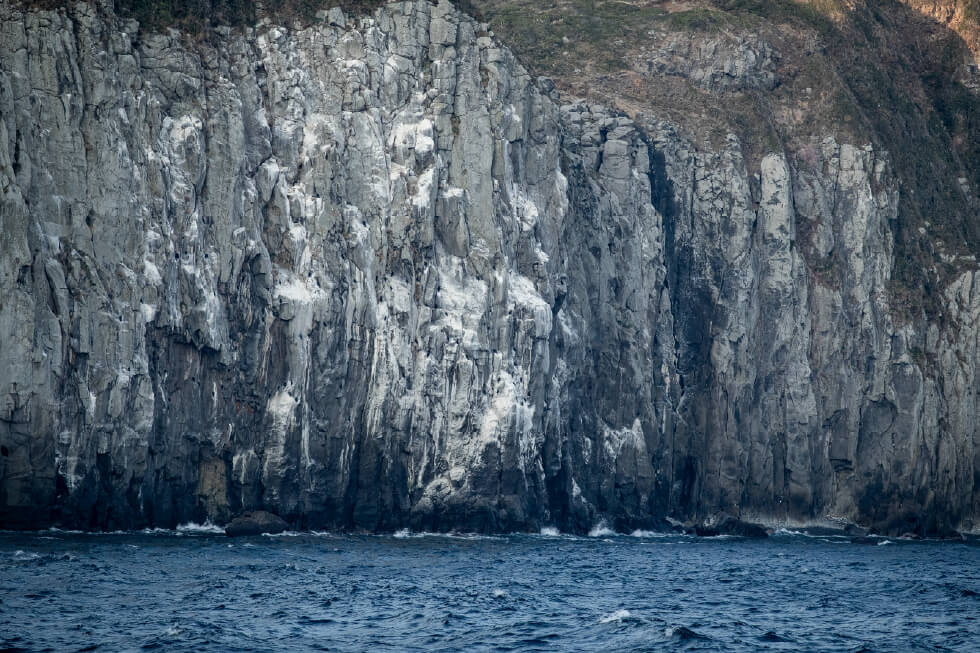 次に向かったのは島の北東にある人気地磯の赤瀬鼻。崖の上の駐車スペースから海側に下りるとダイナミックな磯が広がる