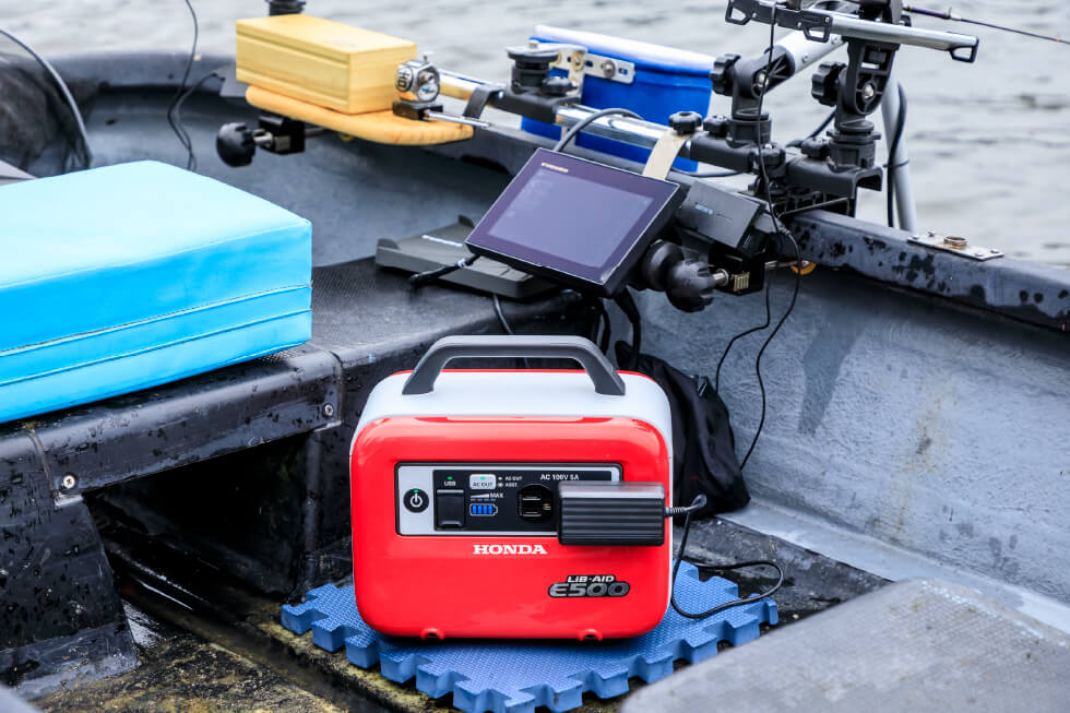 なるほど! ボータブル電源って、たしかに最近、目にする機会が増えたなと思っていました。ですけど、ワカサギ釣りのボートに積んで、しかも魚探の電源にするというのは見たことがないです!