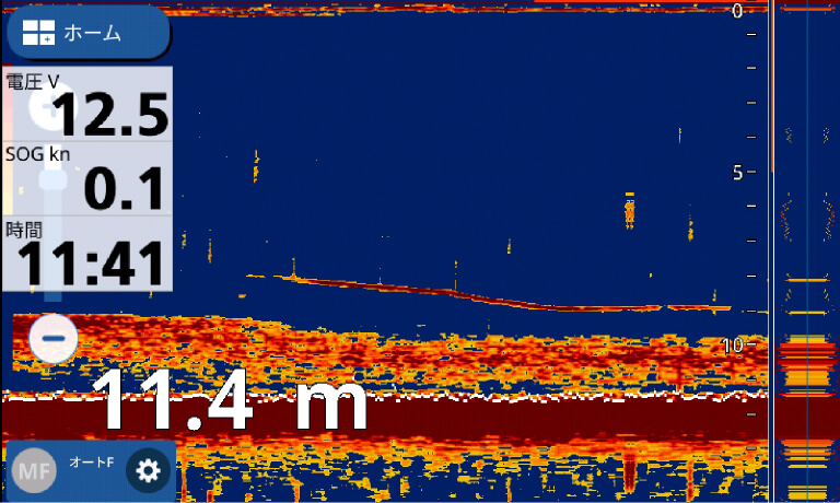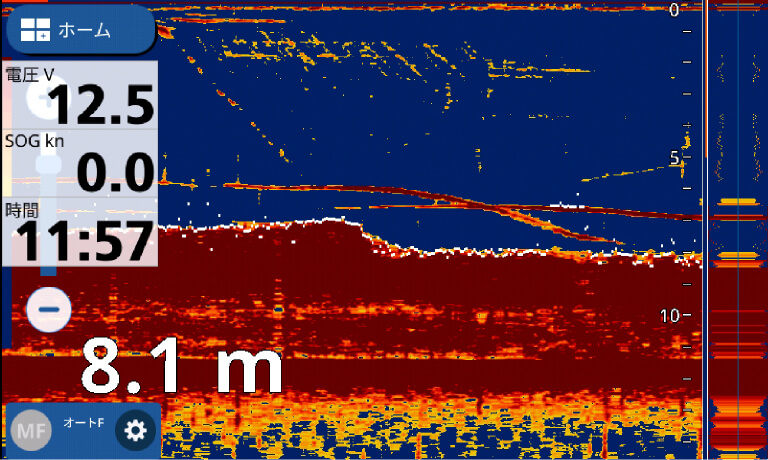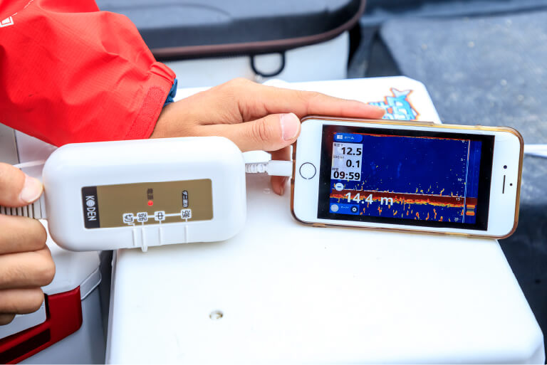 で、今回の魚探は、あらかじめ同期させておけば、スマホの画面にもリアルタイムで映っている画像を飛ばすことができるんだよね。