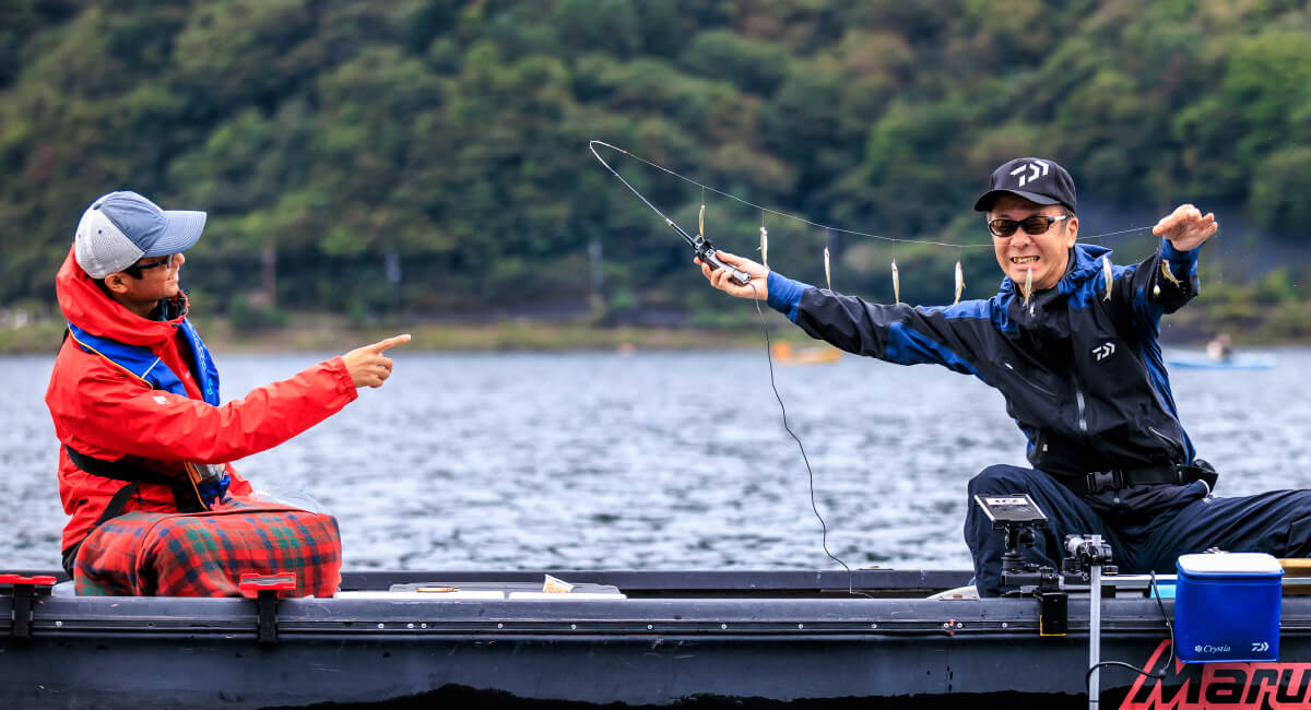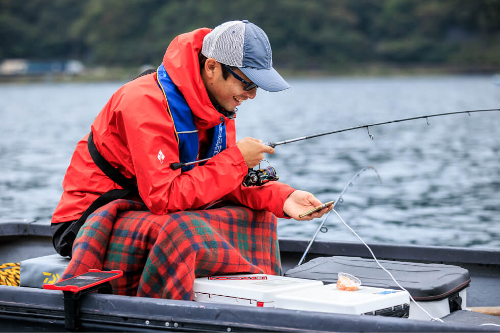 ぬくぬくの釣り環境に手もとでリアルタイムに確認できる魚探の画面。勝利への大きなアドバンテージを手に入れた長島……なのか?