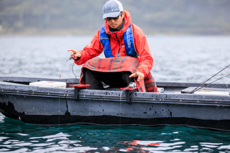 今回、釣りに欠かせない群れを探す作業は、魚探の取り扱いに慣れていて知識も豊富な千島さんにお願いしました。千島さん、あとはお願いしたとおりで!