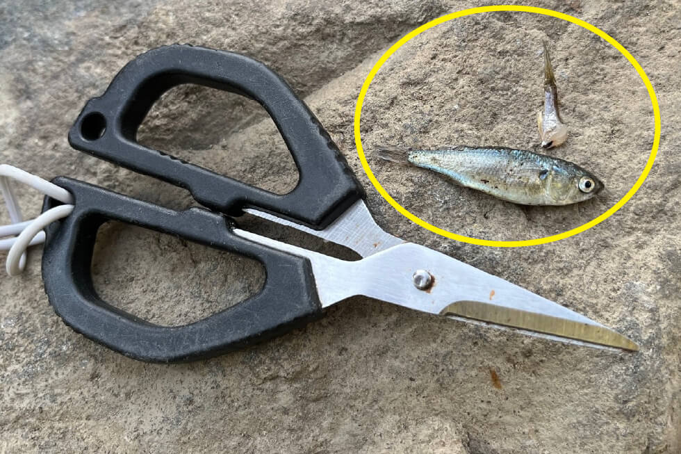 エサの地産地消ですよ(笑)。背中や身の部分をハサミで小さく切ってハリに付ければ、意外に釣れるんですよ。ちなみに生ハムは私もよく使います。あれも臭いは強いけれど調達しやすくていいエサですからね。