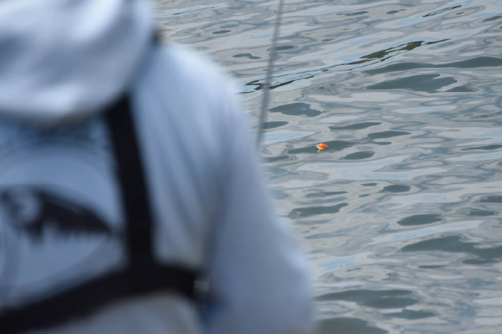 んん? 今なんとなく水中のウキが横にスライドしたような?