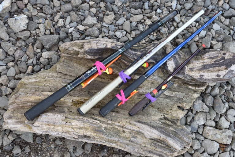 サオは手前を釣る場合で1.8~2.1m、少し沖まで釣る場合で2.7~3mくらいのノベザオを使用