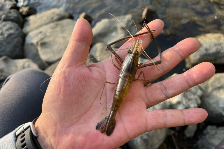 そこなんですよね! 根掛かりは怖いですけど、早アワセはバラシにつながるので禁物。あと3秒数えて、テナガエビがエサを口まで持っていくのを待ったら、ゆっくりサオを持ち上げてみます!