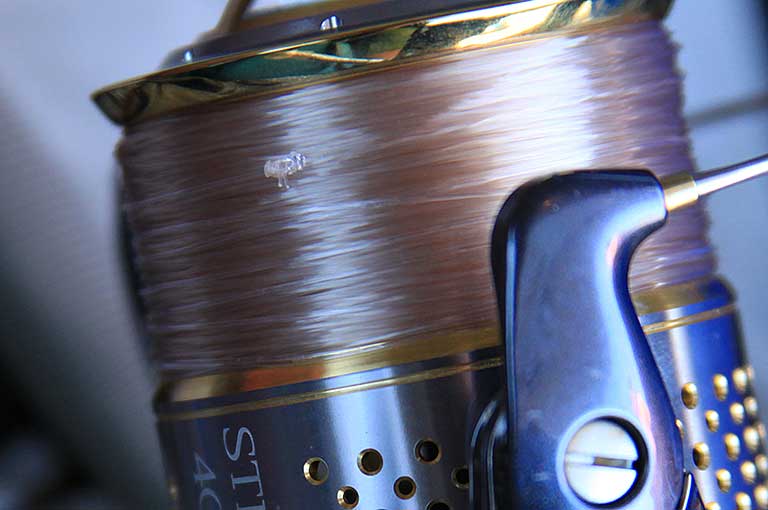を使用する場合は、より小さな番手でも対応できる。ただし、いずれの場合もヒットしたサクラマスのダッシュにしっかり対応できる