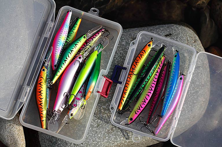 サクラマス釣りに使うメインルアーは9〜11cmまでのミノープラグ。小魚をイメージさせるシルバーベースのナチュラルなものから、水が濁っている時に活躍する派手めのものまで、カラーは各種用意できると心強い。