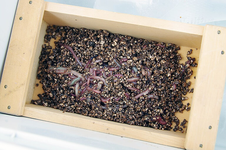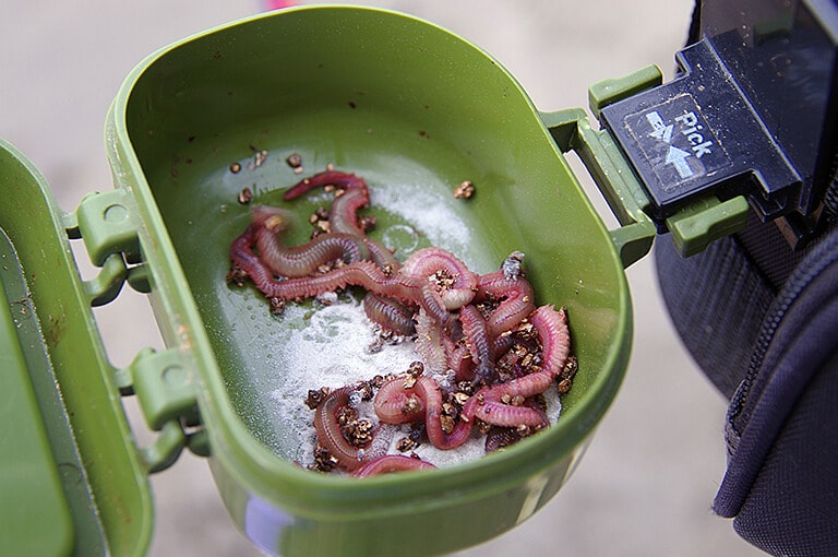 海辺の釣具店などで手に入るジャリメ。プラスチック製や木製のエサ箱に入れて使う