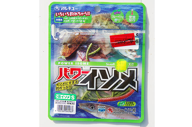 樹脂素材に味や匂いを付けた人工イソメエサは日持ちするので予備エサとしても便利だ