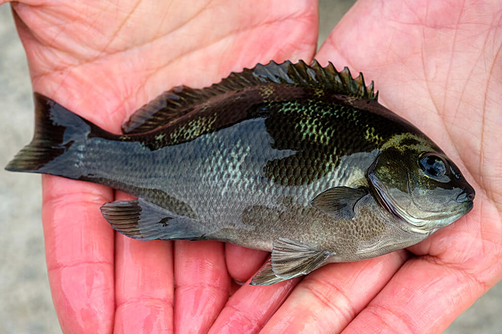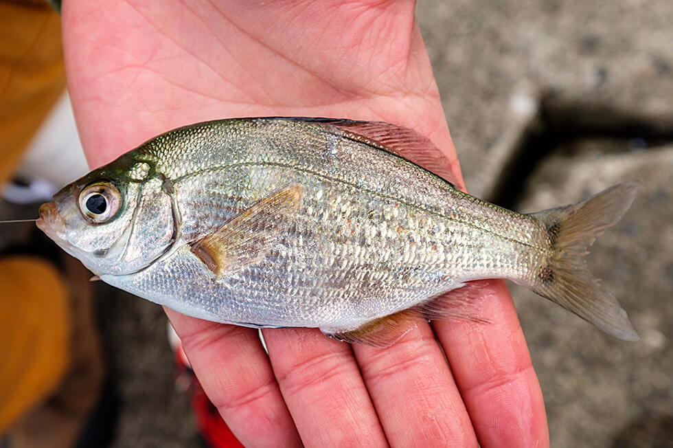 小磯周りを好み、釣れるサイズは10〜15cm。一年中釣れるが最盛期は冬から春にかけて。卵胎生魚として知られ、5〜6月ごろ仔魚を産む。
