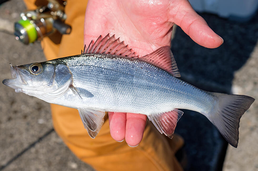 ヒラスズキは潮通しがよい外海に面した磯場や河口近くの海に生息する。成魚の体長は最大で1mを超えるルアーフィッシングの好敵手だが、堤防でも季節により幼魚が釣れることがある。