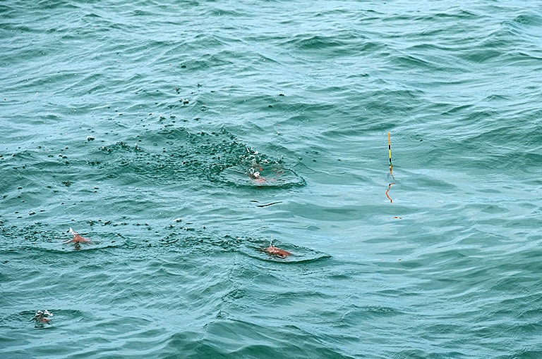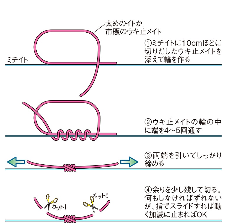 ウキ止メイトの位置)は深くても2mくらいまでとあまり変えず、魚の釣れぐあいによって多少上下に変化させればよい。