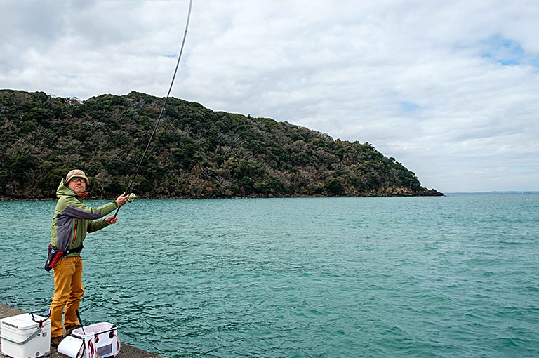 リールザオはノベザオに比べるとねらえる範囲がかなり広がるので、周囲を回遊している思わぬ魚が釣れる可能性も高まる。「コノシロが回遊しているとは夢にも思いませんでした(笑)」と笑顔の太田さん
