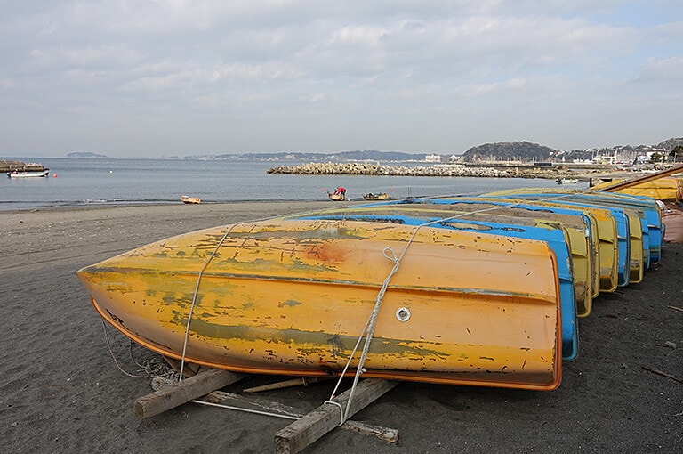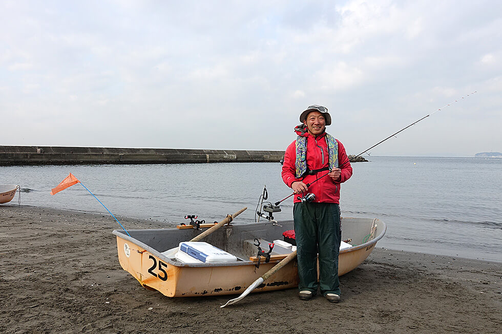 今回利用した神奈川県森戸海岸の葉山釣具センター。釣具店が受付になっており、歩いていける店の裏の海岸にボート乗り場がある
