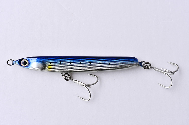 シンキングペンシル。リップなど空気抵抗になるものがなく、スティック状なのが特徴。見た目はペンシルベイトと変わらないが、シンキングペンシルは沈む設定になっている
