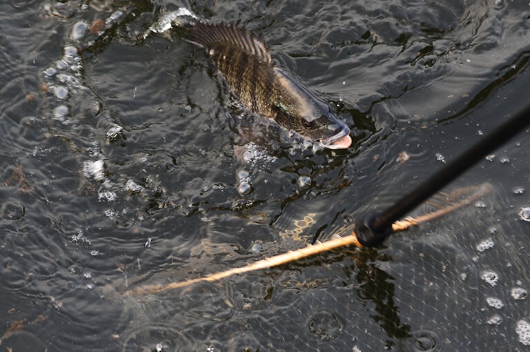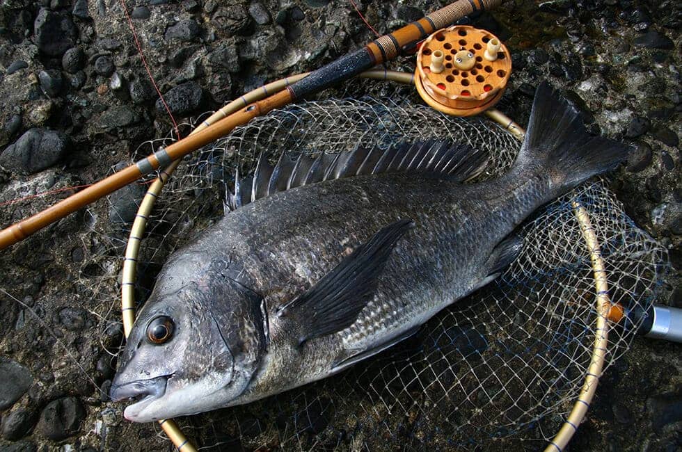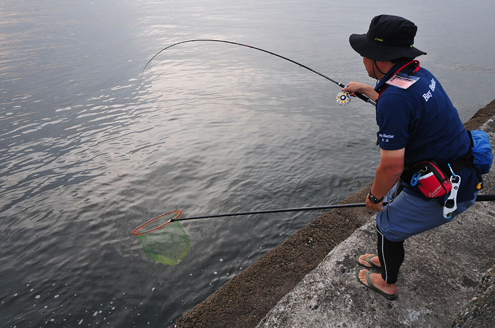 クロダイがヒットしたら、しっかりとサオを保持する。イトは極力出さないようにしてサオをため、必要なら魚の走る方向に付いていくと、魚を早く海面まで浮かせられる。海面で空気を吸わせれば魚の体力が落ちるのも早い。大ものであっても慌てず、フィニッシュはタモで頭からすくう。銀色に輝く風格ある魚体を手にすれば、きっとこの釣りの虜になるはずだ。