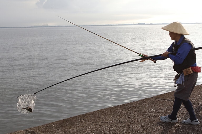 大切なのはアタリらしき変化があっても慌てないこと。早坂さんは「3つ数えて合わせるくらいの感覚」でサオを聞き上げている。聞き上げるというのは、いきなり大きくサオを動かすのではなく、ハリに魚が食いついているのか確認するため、最初にようすを感じ取るつもりでゆっくり上へ動かすことだ。