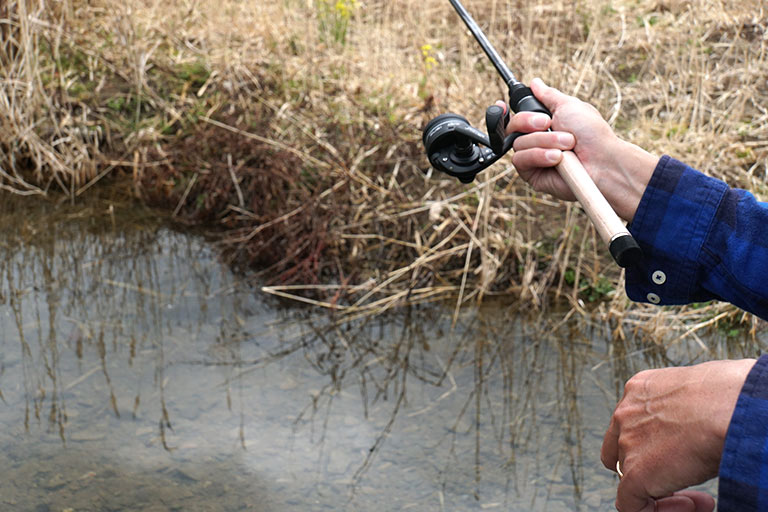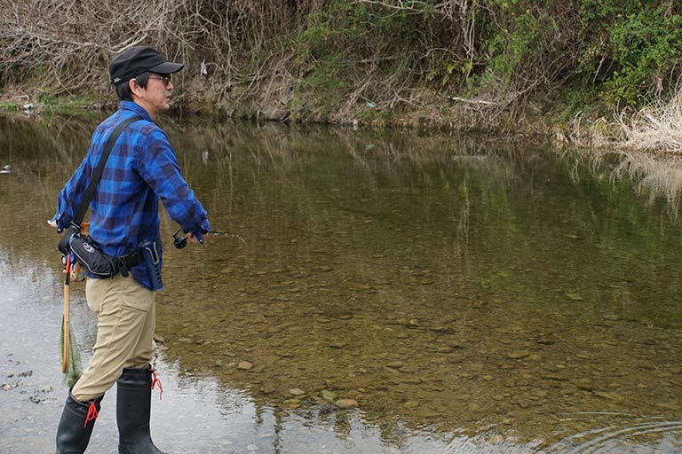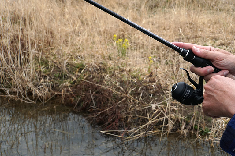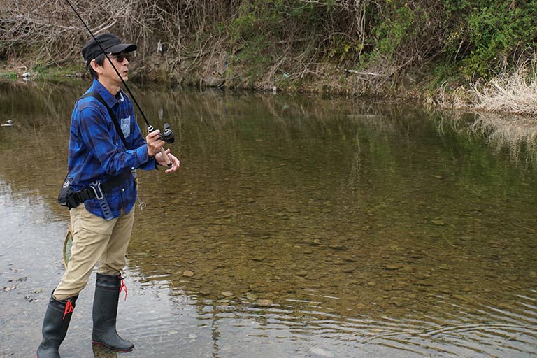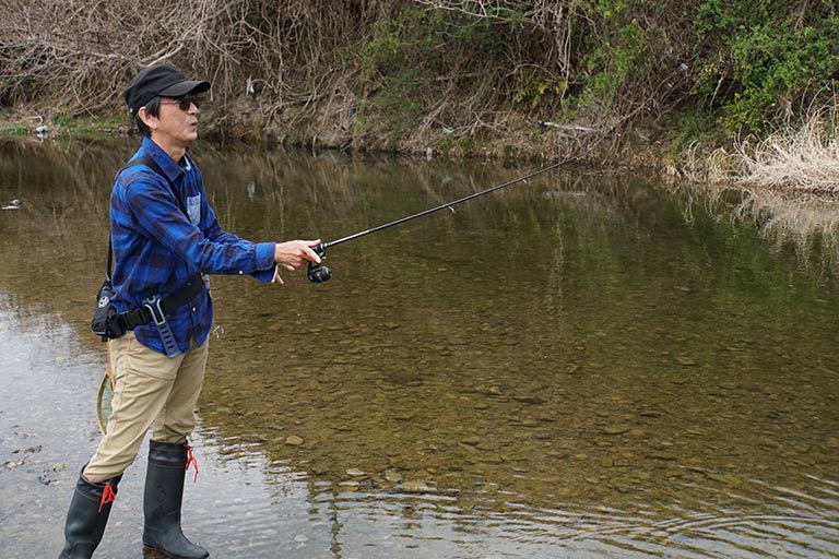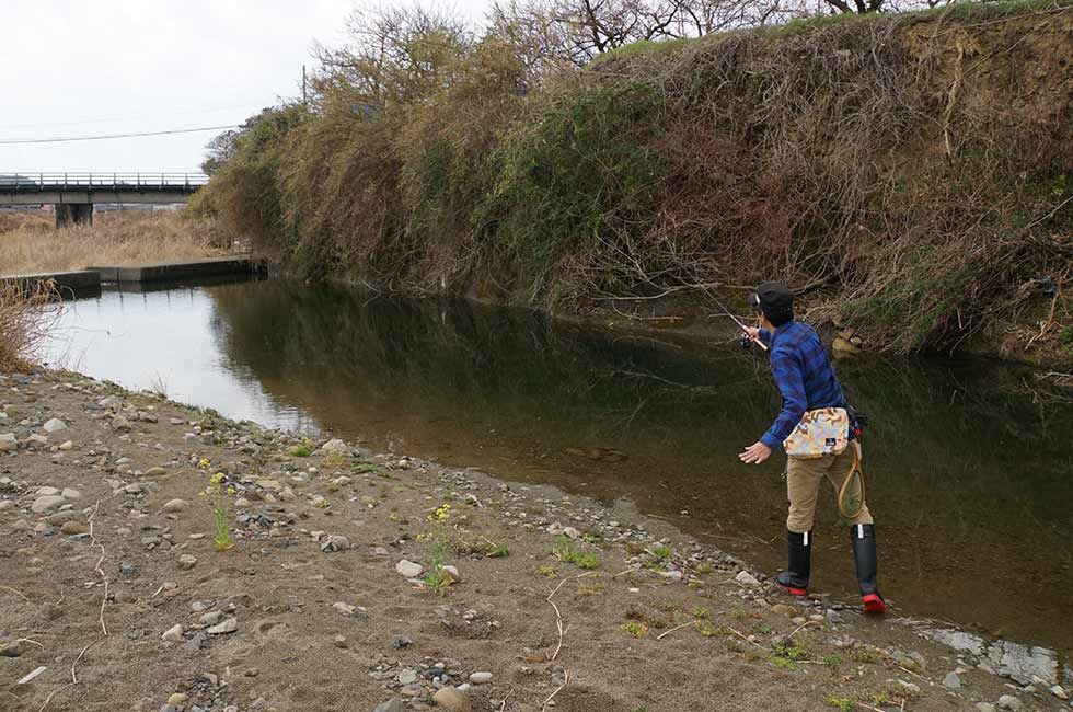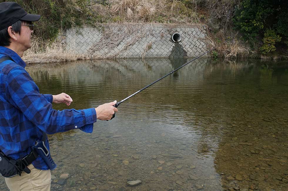 川ムツングを軽快に楽しむ大きなコツが正確なキャスト。軽量なルアーを左右どちらからでも安定してキャストできると、ルアーを障害物に引っ掛けるトラブルも減らして手返しよく釣りができる。