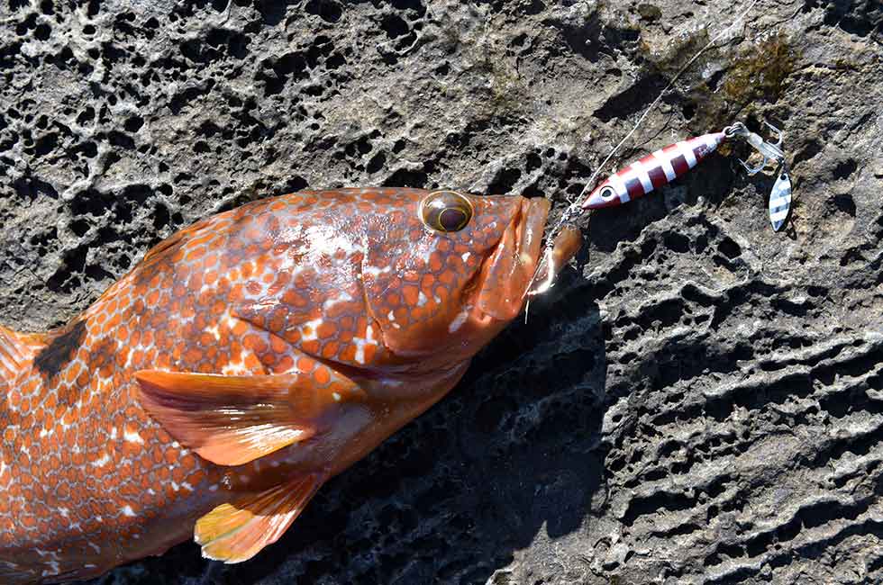 潮止まりは根魚をねらうのも楽しい。ブレード(回転翼)は、根魚に非常に有効だ