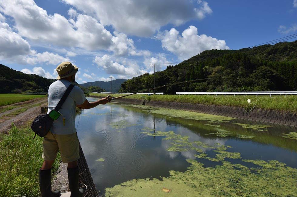 水路は浅いほど雷魚の反応がよく、理想の水深は20~30cm。基本的な釣り方は、雷魚を目で探しながらラン&ガンするか、目ぼしいポイントに腰を据えて雷魚の回遊を待つ。直線的に流れる用水路や小中規模河川は、一見すると変化に乏しく、雷魚の付き場が分かりにくいが、水門や排水機場の周辺は地形が変化していて姿を見せやすい。また、水路の分岐や出合、曲がり角、橋の下なども、そこに水草が絡めば魚がいる確率は高まる。