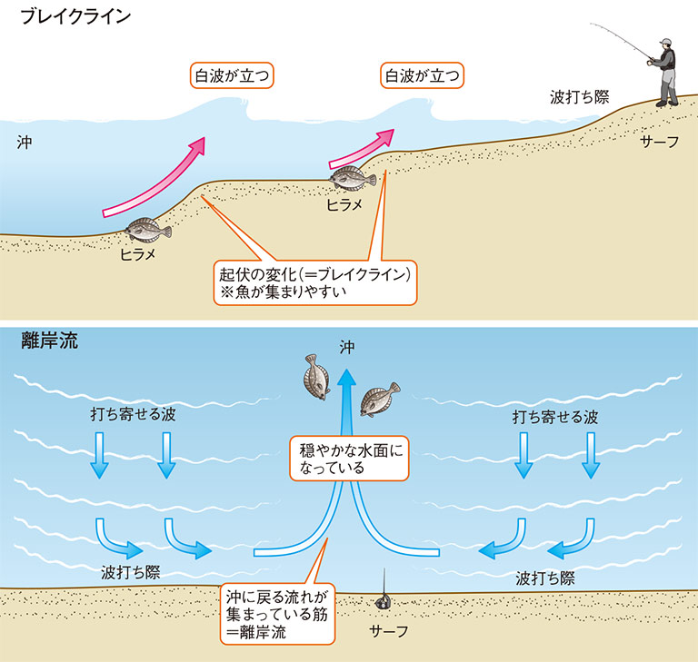 ブレイクラインや離岸流などの