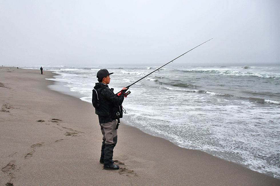 サーフの釣りは朝夕のマヅメ時が最大のチャンス。薄暗い時間は小魚を襲うフィッシュイーターの動きが活発になる