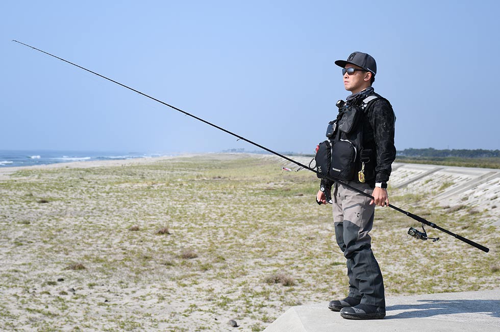 が欠かせない。さらに開けた海岸線で快適かつ安全に釣りをするために、フローティングベストやウエーダーといった装備も着用する。