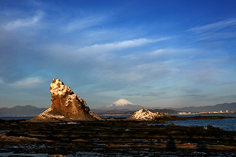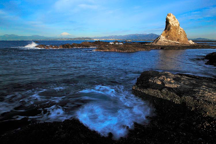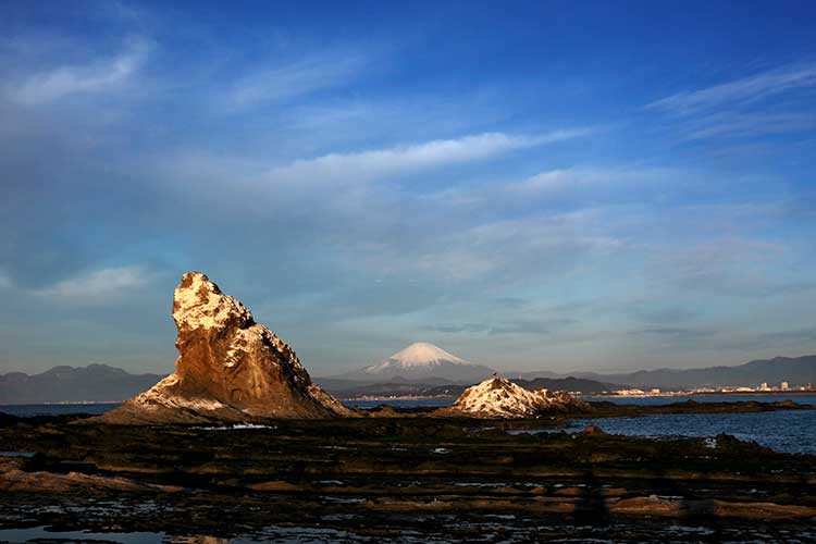 茅ヶ崎の沖に浮かぶ、ちょっと変わった形の岩。