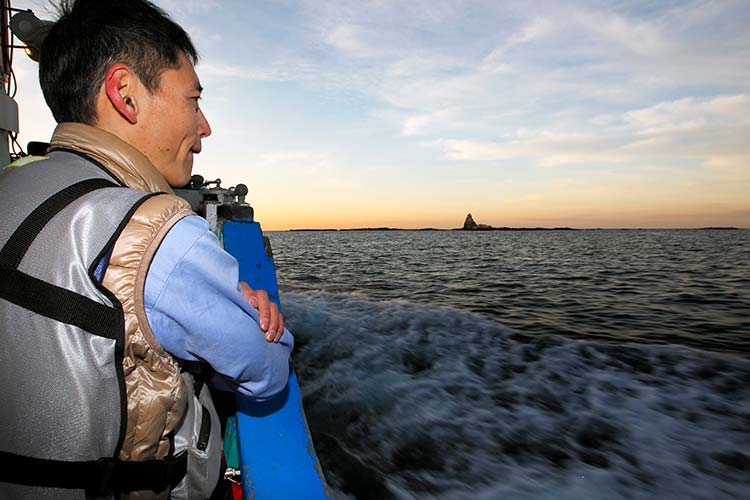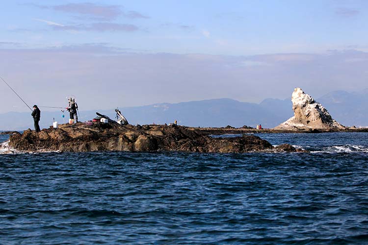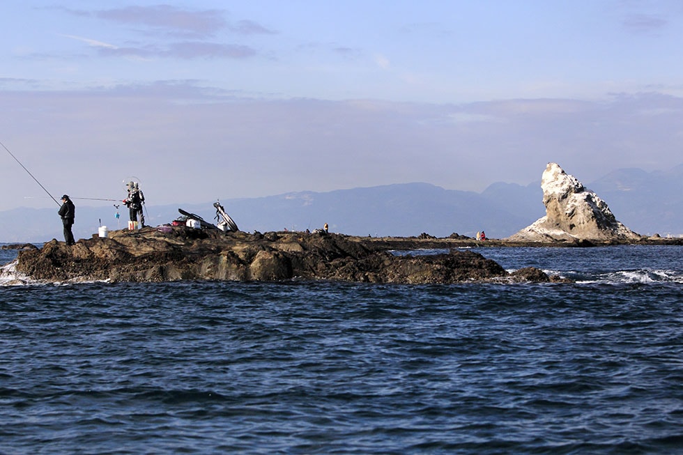 烏帽子岩に行くには、茅ヶ崎漁港からの渡船を利用する。
