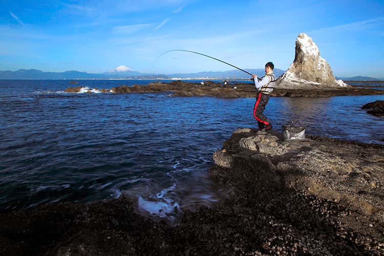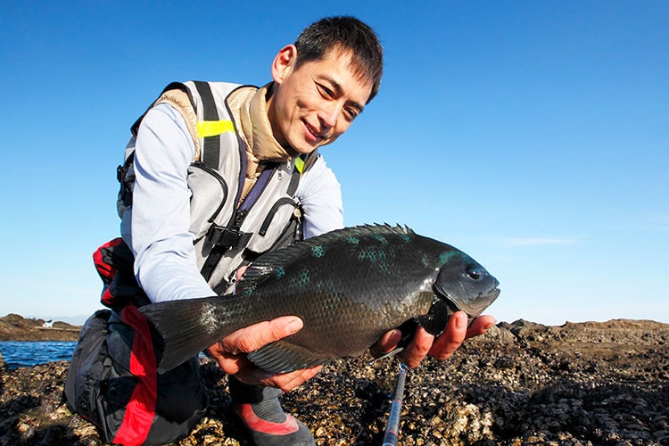 磯風が心地よく感じられる春、烏帽子岩で主にねらえるのはメジナ。