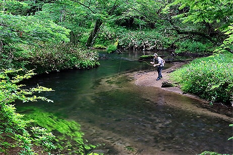 広大な湿原と森を縫う流れでの釣りは、