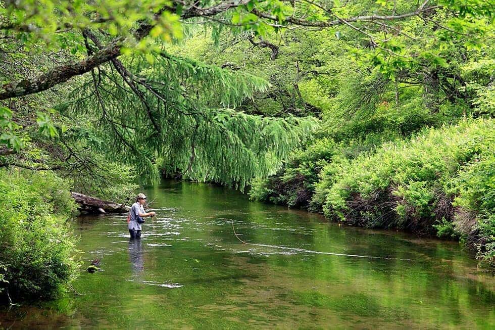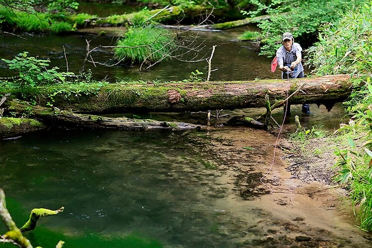 日光国立公園の湿地内にある湯川は、フライフィッシングを楽しむこともできるのだ。