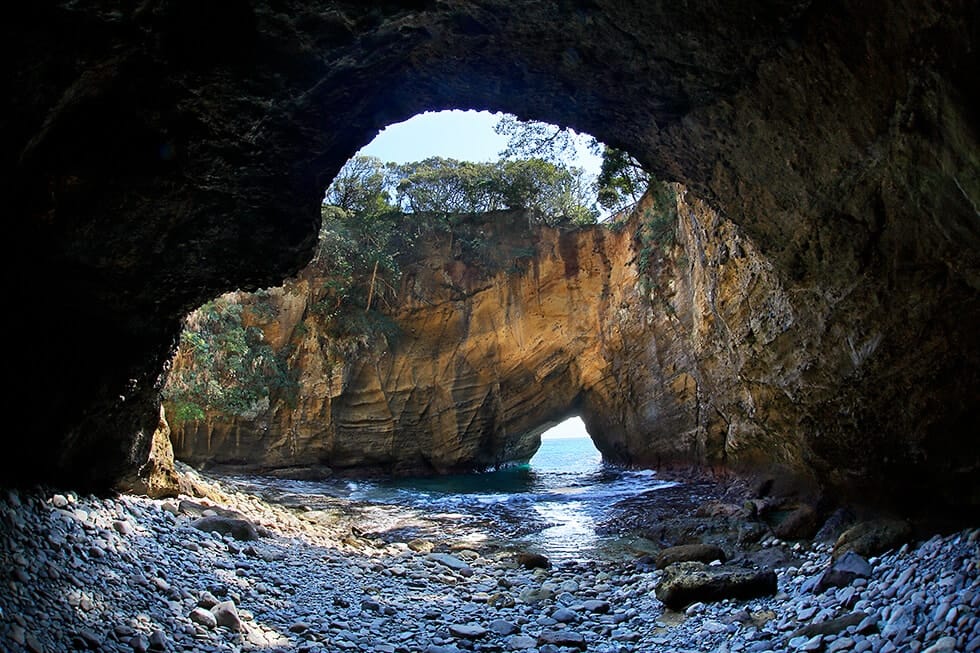 途中、海食洞の天井が一部崩れてできたという龍宮窟に寄ってから、