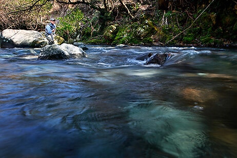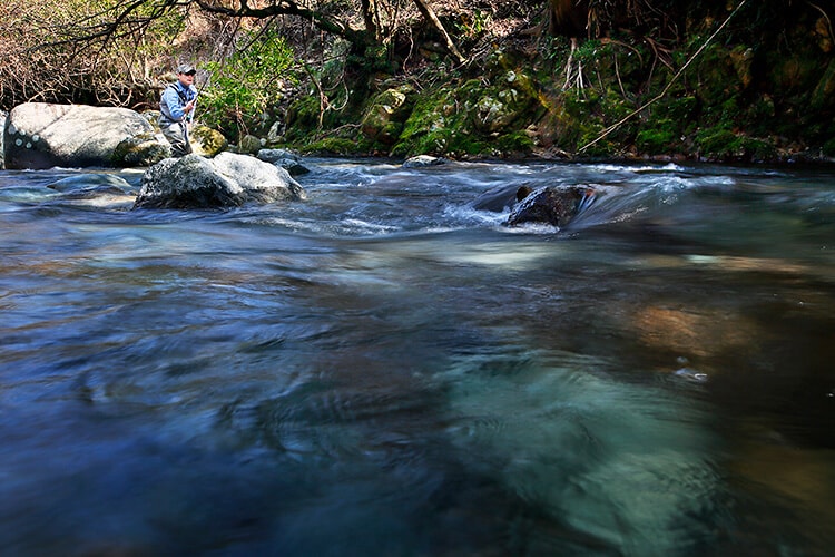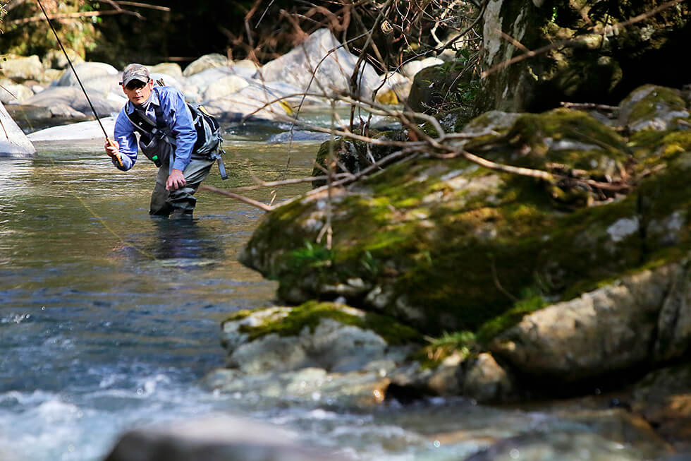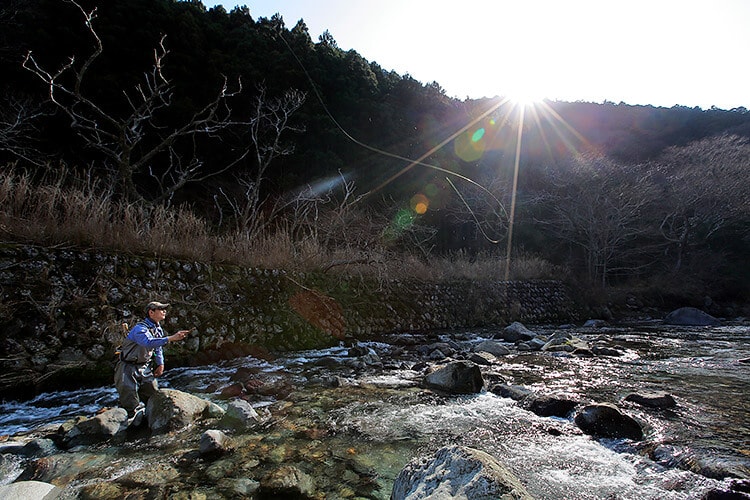 この日は渓流でアマゴをねらう予定だ。