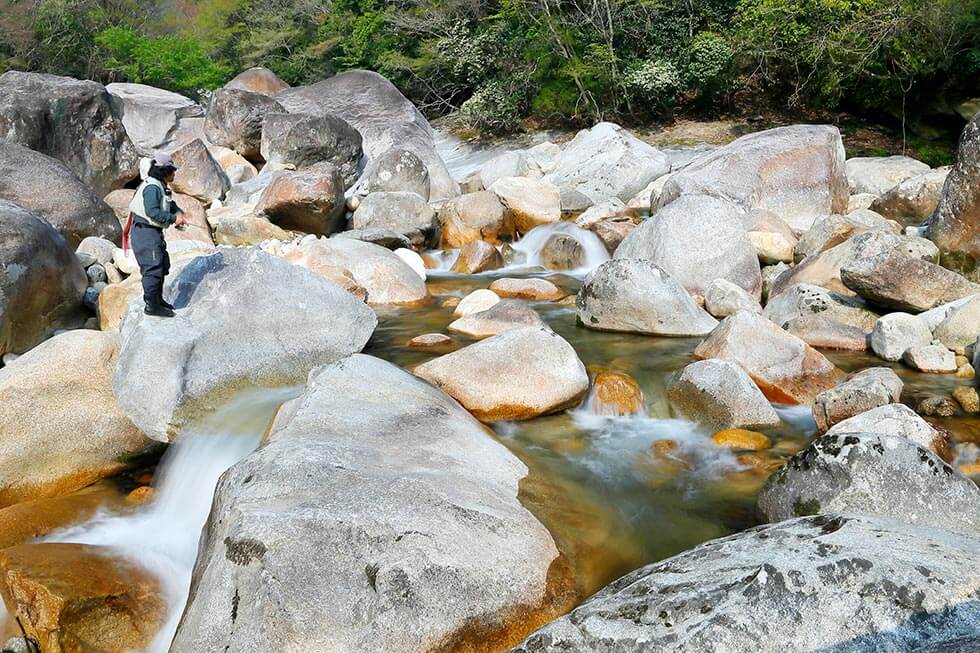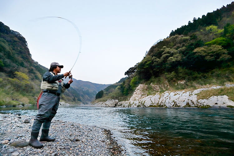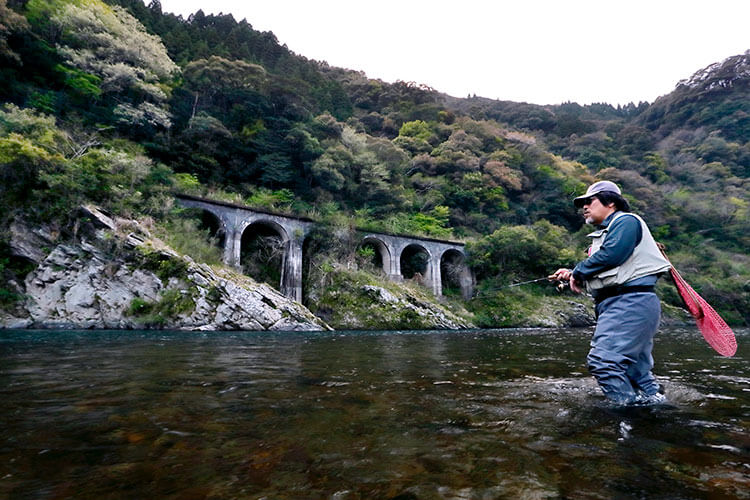 ヤマメのほか初夏からはアユの釣り場として多くの釣り人を魅了する五ヶ瀬川。